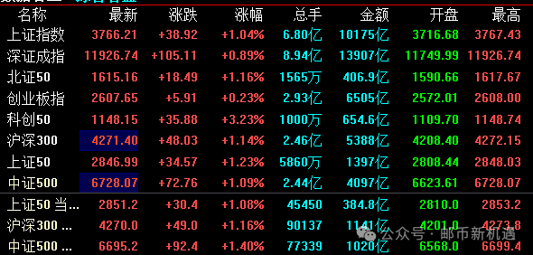 今天,A股早盘低空震荡,午后再度强势拉升,上证指数再创10年新高,北证50历史首次收在1600点之上,深证成指、科创50等也纷纷创出多年新高,成交小幅萎缩至2.45万亿元。