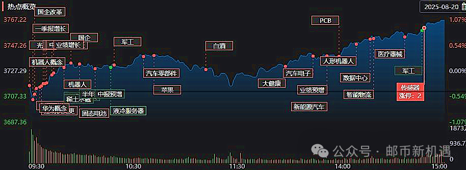 A股收评:8月20日,A股三大指数集体收涨,截至收盘,沪指涨1.04%,深成指涨0.89%,创业板指涨0.23%,北证50指数涨1.16%,沪深京三市全天成交额24484亿元,较上日缩量1923亿元。全市场超3600只个股上涨。