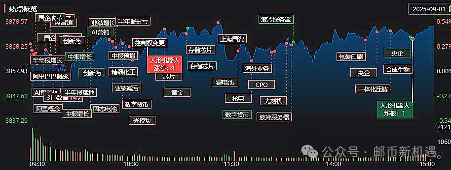 A股收评:9月1日,创业板指高开高走大涨2.29%,黄金股、创新药概念股集体爆发。A股今日集体上涨,截至收盘,上证指数涨0.46%,深证成指涨1.05%,创业板指涨2.29%,北证50跌0.36%。沪深京三市全天成交额27776亿元,较上日缩量525亿元。全市场超3200只个股上涨。