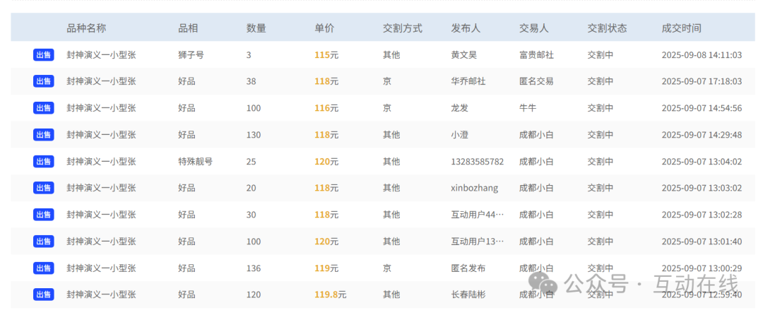 除了龙头产品《封神演义》广受认可,洞庭湖小型张也已稳稳站在 30 元以上区间,今日更有大户现身扫盘,进一步巩固了其强势表现。与此同时,人物题材的张仲景、华佗、张骞小型张成交持续放量,带动小型张板块热度不断扩散,形成多点开花的态势。