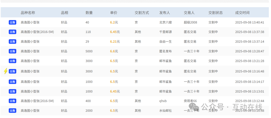 小编还注意到,高逸图小型张今日成交颇为活跃,当前 6.2 元的价位仍处于低位,这类低门槛的小型张近期颇受中小投资者关注,成为市场中另一股不可忽视的力量。眼下才刚到周一,本周后续市场能否延续这份热度,甚至催生出新的热点品种,值得大家持续关注。