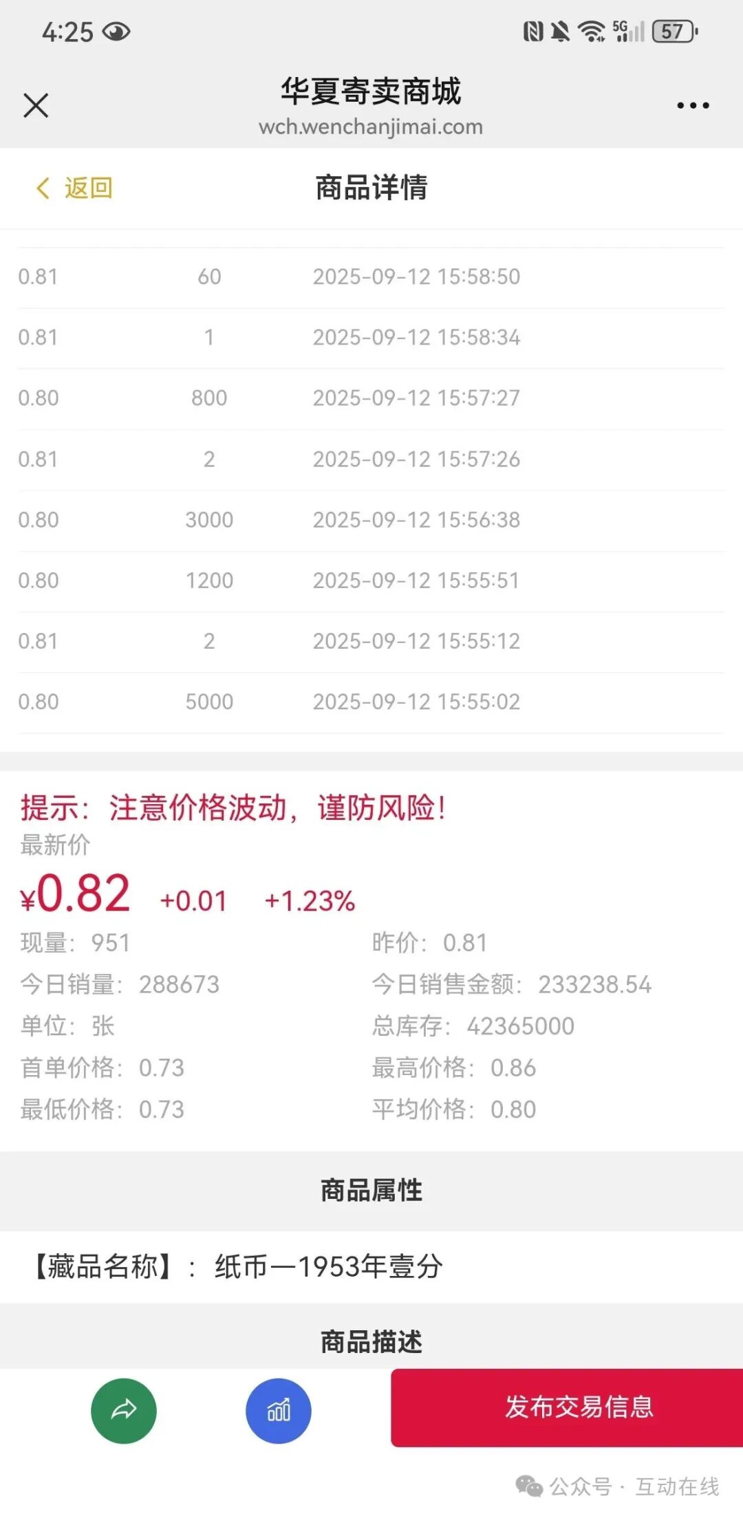 华夏寄卖商城【1953 年壹分】(代码:3001)