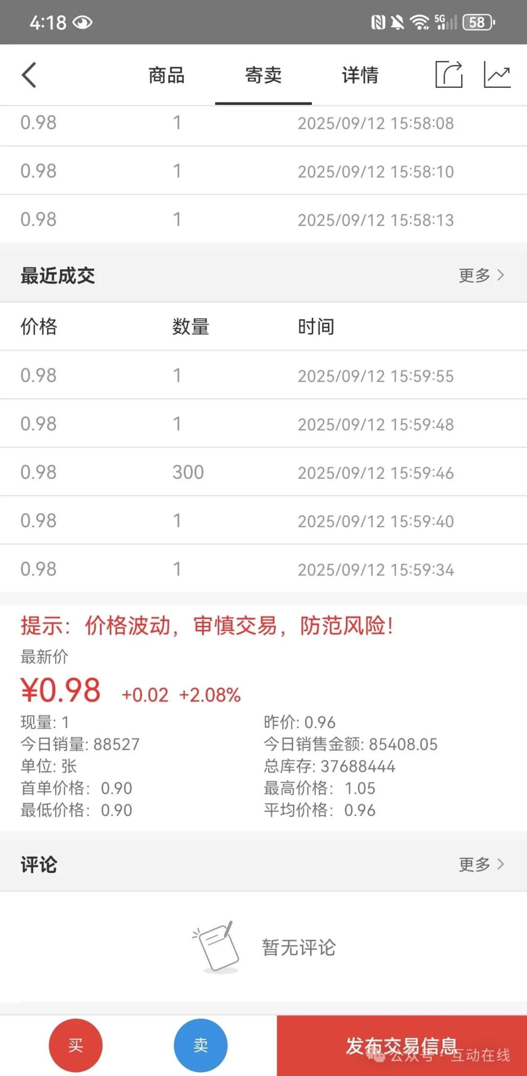 今日成交量高达 28.87 万张,在今日各平台同类品种中成交量位居首位,成交金额 23.32 万元,收盘价 0.82 元 / 张,涨幅 1.23%。今日价格以低开开启交易,开盘价低于前一交易日收盘价,盘中抛压增重导致价格下跌,一度出现较大幅度的回调,部分投资者因担忧价格持续下跌而选择抛售,但随后迅速回升,显示出市场存在一定的买盘支撑,在价格跌至一定低位时,有大量买盘入场承接,推动价格反弹,对于该品种,建议密切关注后续变化,尤其是买盘支撑力度是否能持续,以把握投资机会。