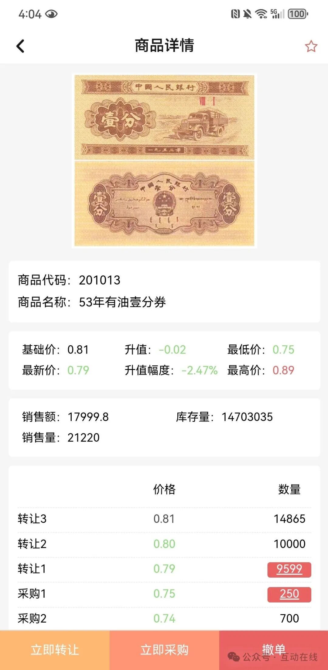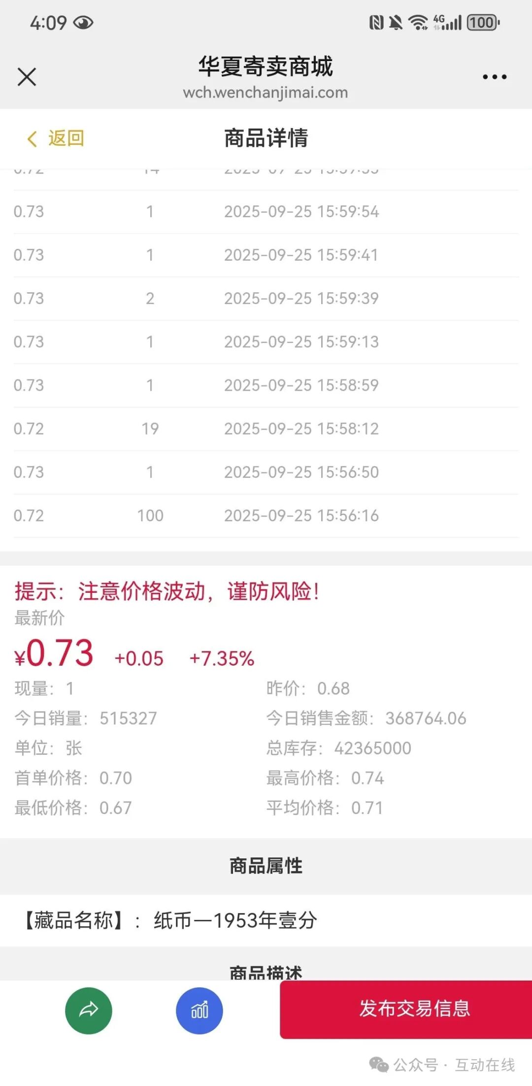 华夏寄卖商城【1953 年壹分】(代码:3001)