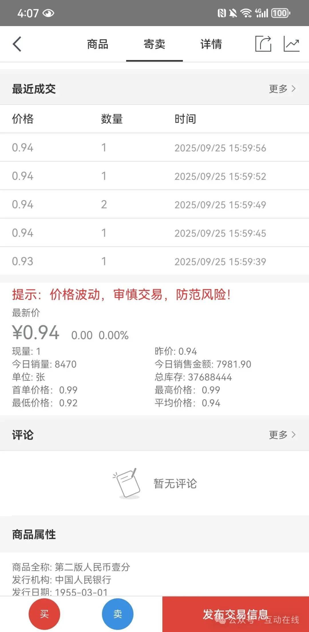 今日交投近乎停滞,全天仅成交 0.85 万张,成交金额 0.79 万元,收盘价 0.94 元 / 张,与前一交易日持平。盘面以窄幅震荡为主,极低的交易量直观反映出市场买卖意愿低迷,资金参与度不足。从这类大众化收藏品种的特性来看,当前缺乏短期行情驱动因素,且未形成有效价值共识,投资者需做好长线布局准备,密切关注后续成交量能否有效放大以打破僵局。