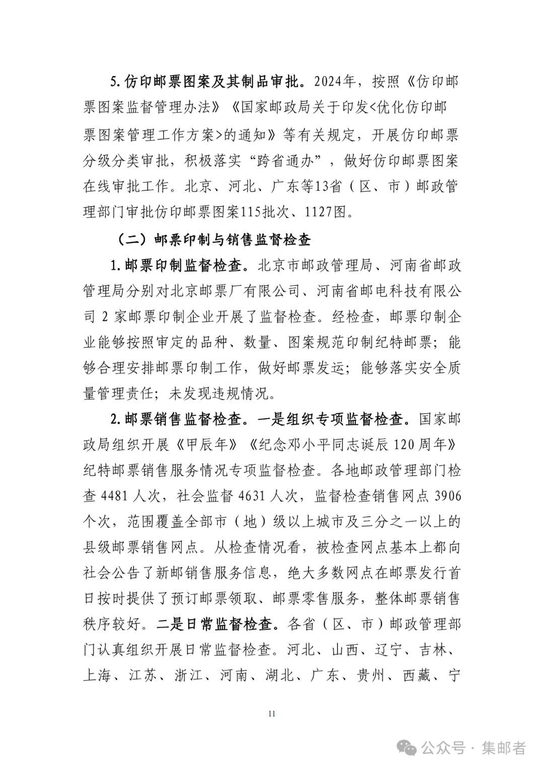集邮者讯,今天国家邮政局正式发布的《2024 年邮票发行监管报告》,全面阐述了 2024 年邮票发行、印制、销售、监管以及集邮文化活动等方面的情况,并对邮票发行工作进行评价,提出改进方向!